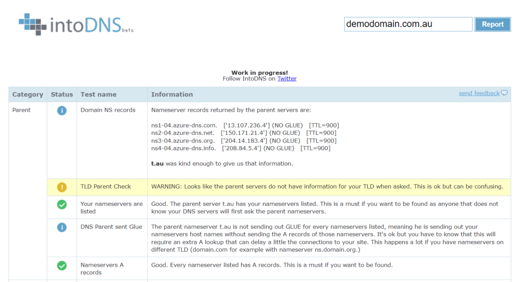 To check what nameservers are currently configured for your domain, you can use the handy service IntoDNS